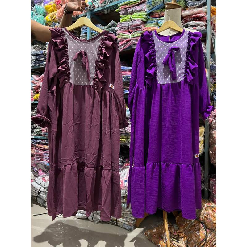 Fashion Muslim > Pakaian Muslim Anak > Pakaian Muslim Anak Perempuan > Gamis Anak 2 3 4 7 8 9 10 Tahun Anak Cewek Perempuan Tanggung Crinkle Pita Tali Terbaru Kekinian Viral muslimah gamis crinkle kringkel brokat fatonah shop (Gamis Putri Ayu )