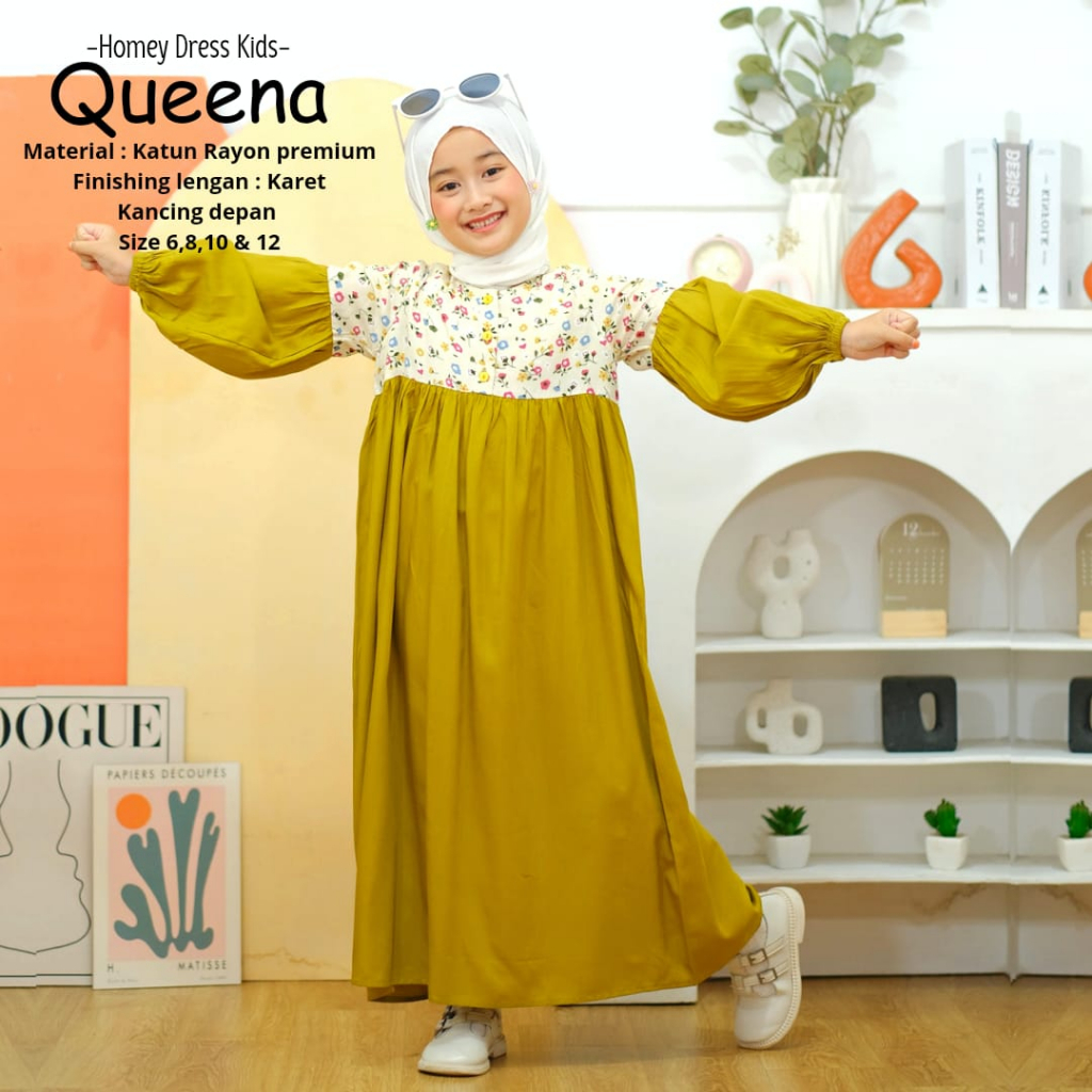 Fashion Muslim > Pakaian Muslim Anak > Pakaian Muslim Anak Perempuan > Gamis Anak Motif Bunga Homey Dress Anak Queena Gamis Anak Muslimah Usia 4-12tahun Bahan Katun Rayon Premium Nyaman Dipakai| Bisa Cod