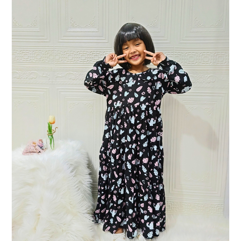 Fashion Muslim > Pakaian Muslim Anak > Pakaian Muslim Anak Perempuan > Gamis Anak Motif | Gamis Rampel Simple | Gamis Premium Warna Hitam | Yasta Fashion