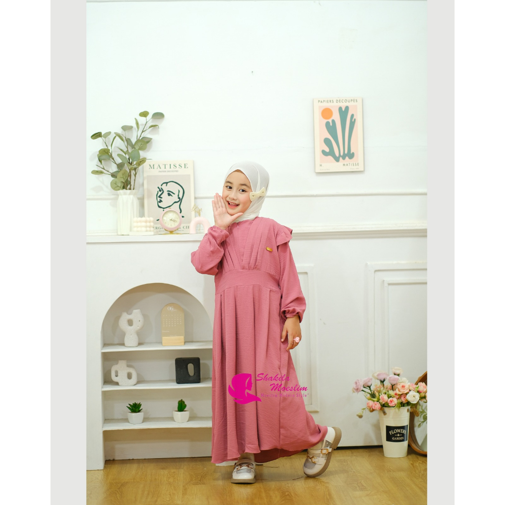 Detail Gamis Anak Naomi Crinkle Airflow Mute Free logo Shakila 2 - 11 Tahun
