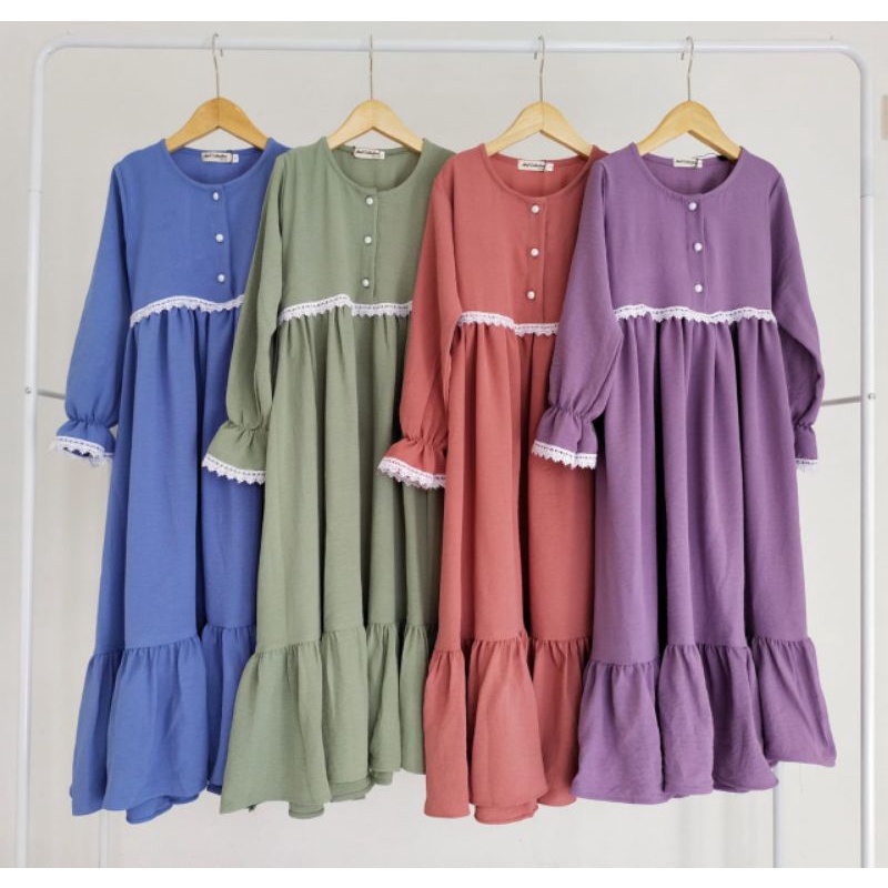 !!! Crincle !!! Aplikasi renda sangat mempercantik !!! Bagian bawah sangat mayung terlihat Mewah !!! jahitan superrrrr rapih setara Butik !!! Nyaman utk anak
