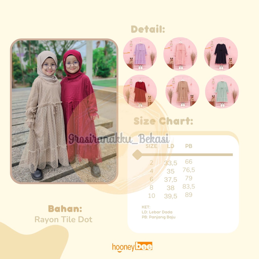 Detail Gamis Anak Tile Quenbee Junior Honeybee Warna Tosca Size 2-10 Thn