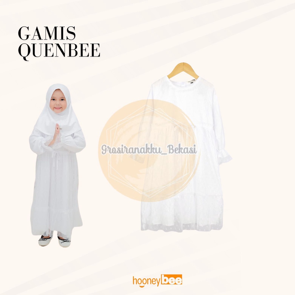 Detail Gamis Anak Tile Quenbee Junior Honeybee Warna Putih Size 2-10Tahun
