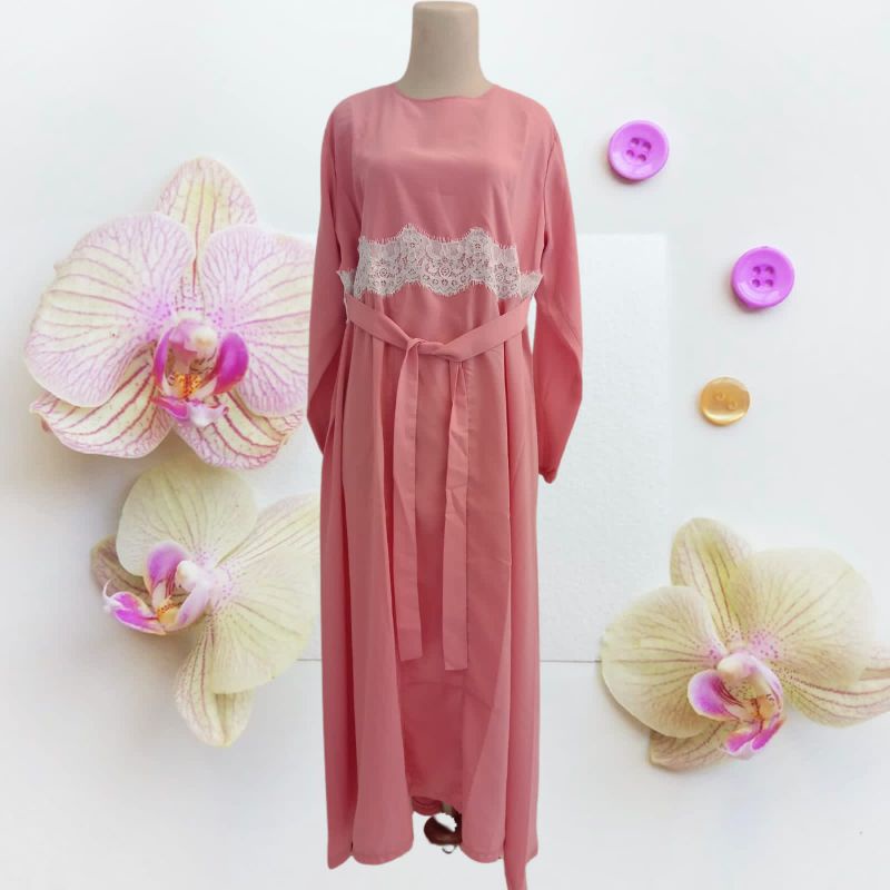Fashion Muslim > Dress Muslim > Gamis > gamis bahan wolfis renda