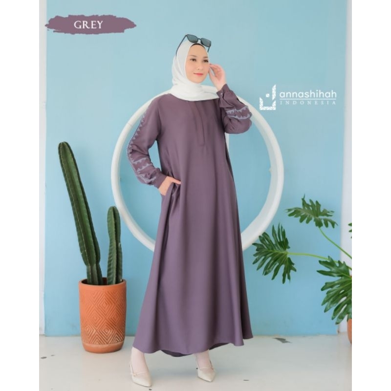 QUEEN DRESS Gamis susun dengan exsen bordir elegant bagian dada dan manset kancing aktif busui freindly yg bikin nyaman untuk di pakai wudhu friendly manset semi balon bagian bawah dirempel rapat tambah cantik dan tambah flowly