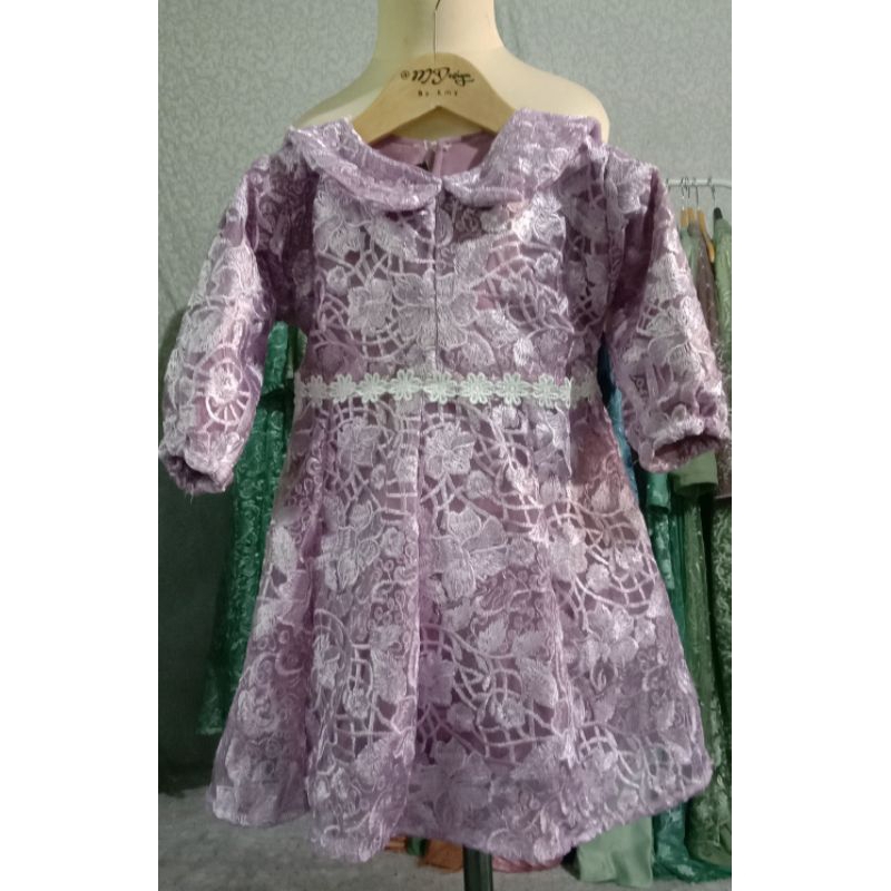 gamis brukat anak usia 2-3th Ld 60-65cm PJ baju 58-65cm ada tali pinggang variasi renda/pita di bagian pinggang full brukat lapis hyget