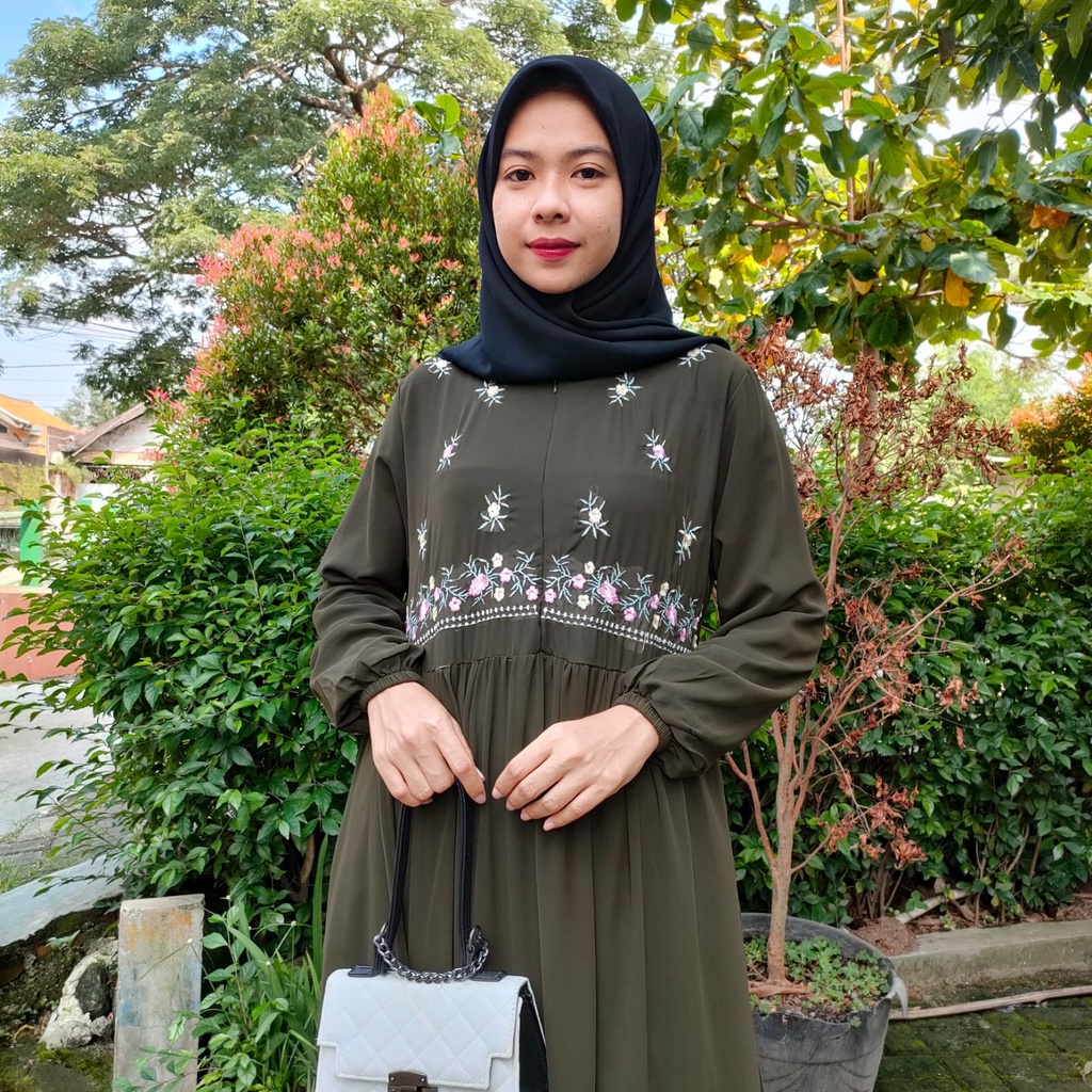 Detail Gamis Ceruty Bordir / Gamis Bunga Ceruty Premium / Gamis Ceruty Full Furing