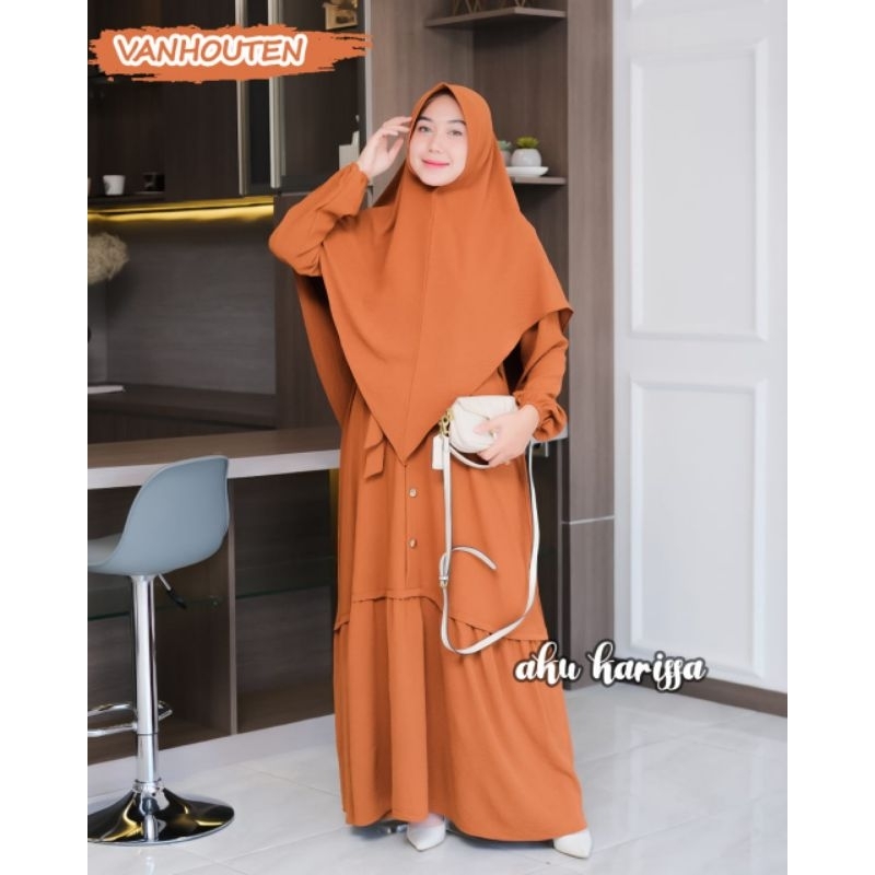 ORIGINAL AKU KARISSA LABEL Liora / zafira set hijab syar'i Pet antem ( non busa ) Material cringcel 🍁Detail Gamis🍁 busui🤱🤰 tangan kerut Size M Ld 105 PB 135 Size L Ld 110 PB 140 Size XL Ld 120 PB 140