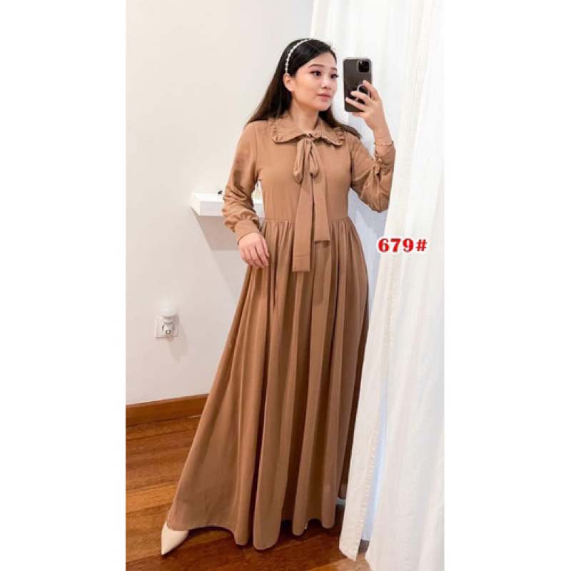 Model Kancing - Bagian atas ada 4 kancing aktif. - Bagian pinggang ada tali aktif. - Ujung tangan kerut. - UKURAN = ALL SIZE. - Lingkar dada = 120cm. - Panjang gamis = 122cm.