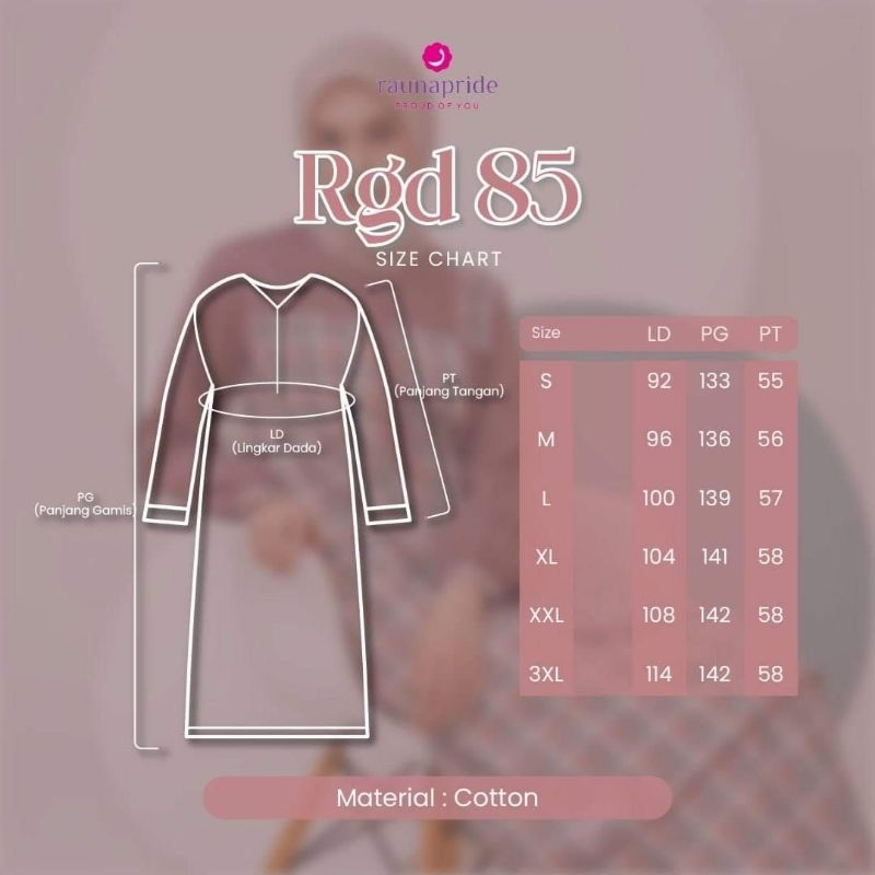DETAIL : - Rauna Gamis 85 menggunakan bahan Cotton sehingga terasa adem, halus, dan memiliki daya serap yang baik - Gamis dengan bukaan kancing dada depan (Busui Friendly) dan terdapat kancing cadangan - Kancing dibagian lengan (Wudhu Friendly) - Terdapat Kantong di bagian kanan