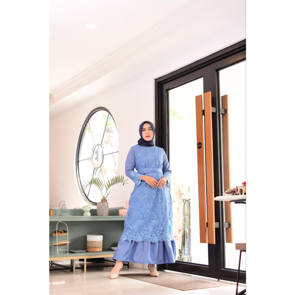 Detail Gamis Dita Terbaru Tile Brukat Mutiara Cantik Dan Murah Super Jumbo Size M L XL XXL 3L Dress Kondangan Simple Elegant READY! FREE BELT