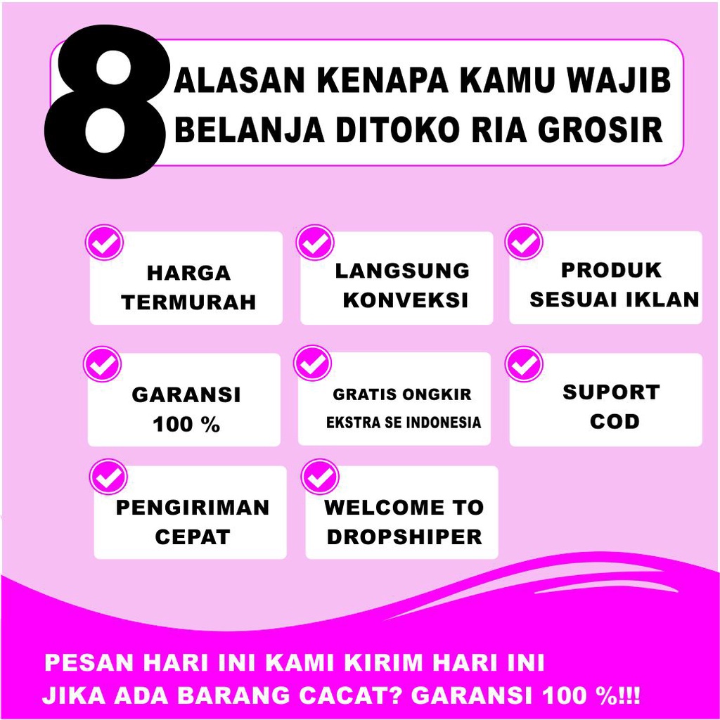 Terima GROSIR? Bisa banget!! Chat aja kak Bisa COD ? Bisa banget, Bisa Dropship Resi Manual atau Otomatis ? Bisa banget donk!!! Selamat Berbelanja di Ria Grosir Tegal