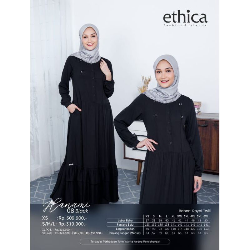 Gamis Ethica Hanami 08 (Black, Cream, Dusty Pink) Hanami 8 Hanami08