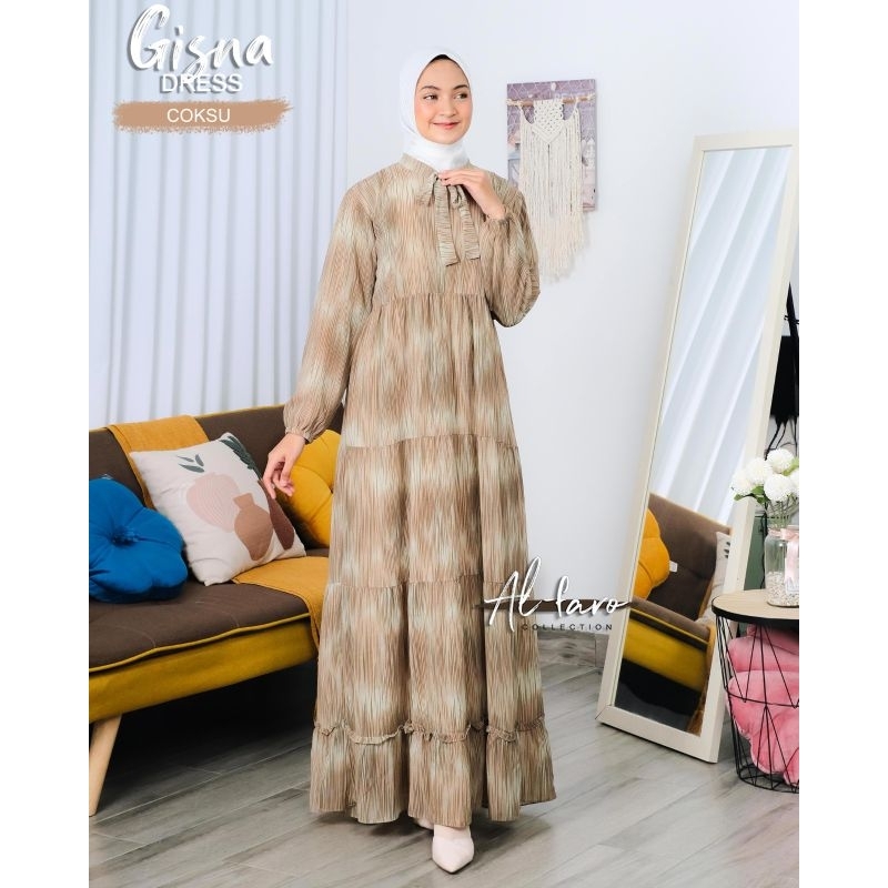 GAMIS GISEL GISNA DAN KEYSHA MONA ORI ALFARO DRESS SET OUTHER 2IN1 AL FARO muslimah update fashion clothes baju muslim muslimah wanita remaja hits ootd reseller dropshiper