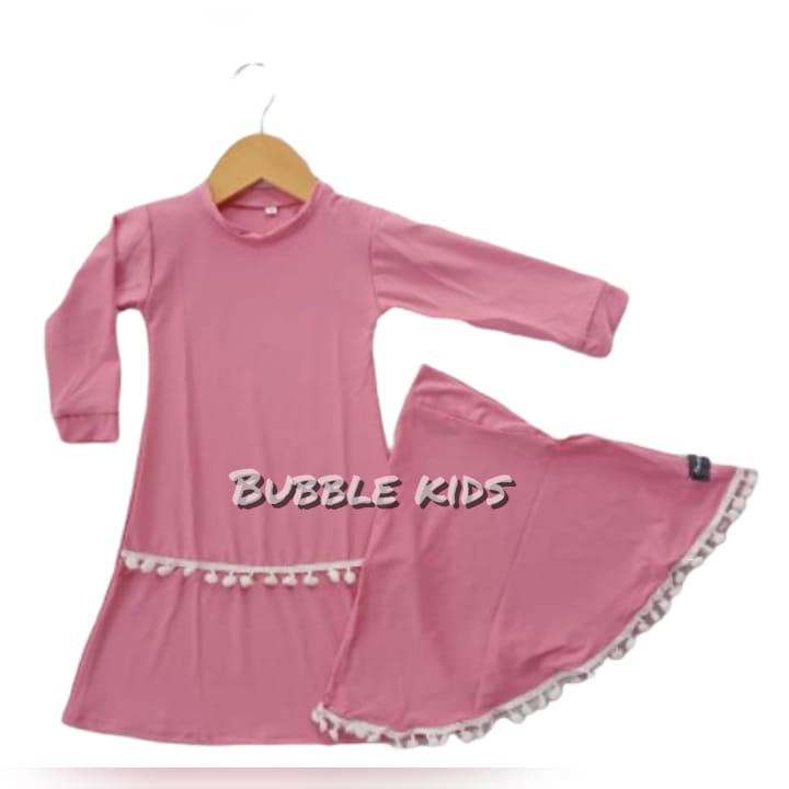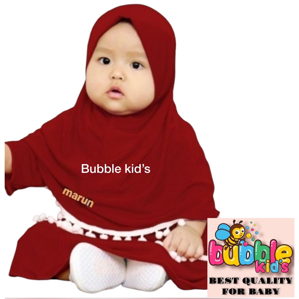 Gamis Hijab Bayi Renda Pom-Pom Pakaian Anak Balita Perempuan Katun Polos Gemoy lime