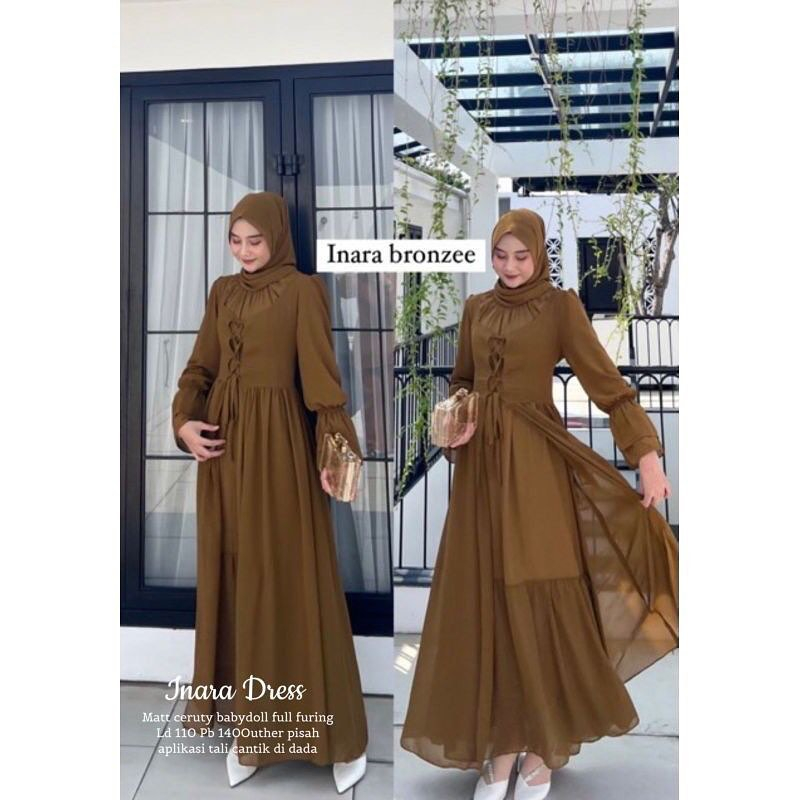 Detail Gamis inara dress bahan ceruty baby doll premium full furing / busui / resleting depan original