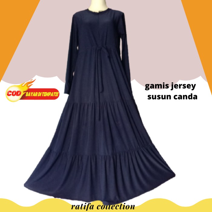 Asalamualaikum wr.wb GAMIS JERSEY CANDA SUSUN kami merupakan bagian koleksi Ratifa Colection.yang mengusung gaya minimalis dengan aksen overlap dan efek cutting Bayes di tengah ada bagian tali sehinga bisa di atur LD baju membuat dress ini tanpak chick dan feminim.