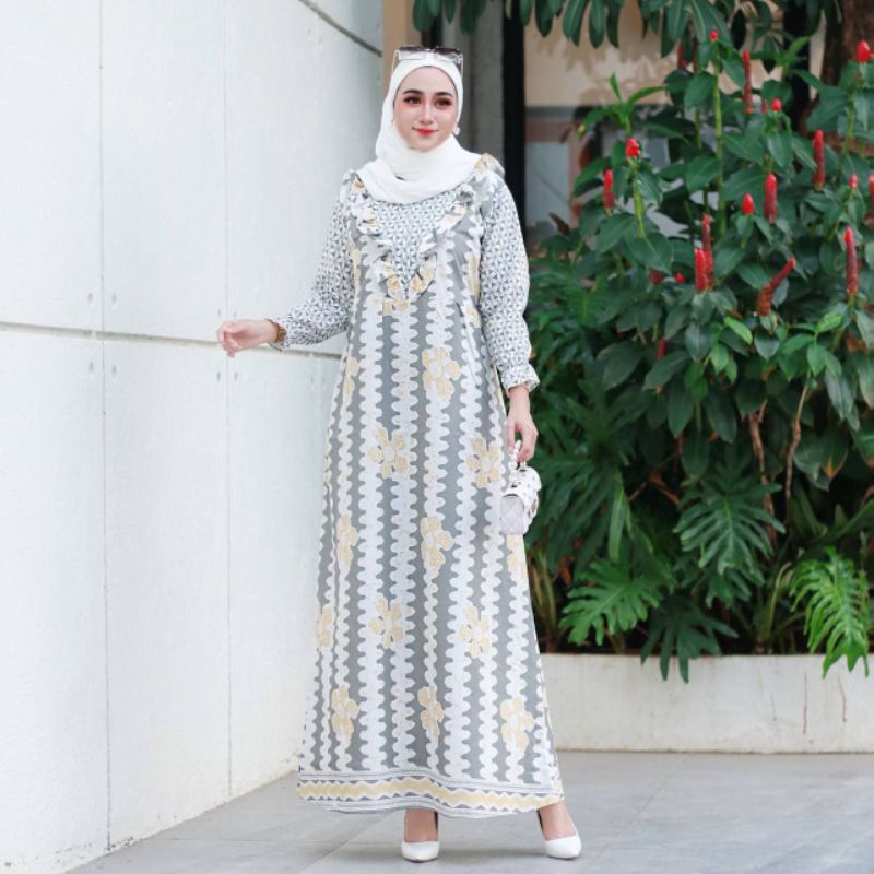 Detail GAMIS JUMBO BUSUI RESLETING DEPAN MOTIF MEGA KEKINIAN GAMIS WANITA TERMURAH