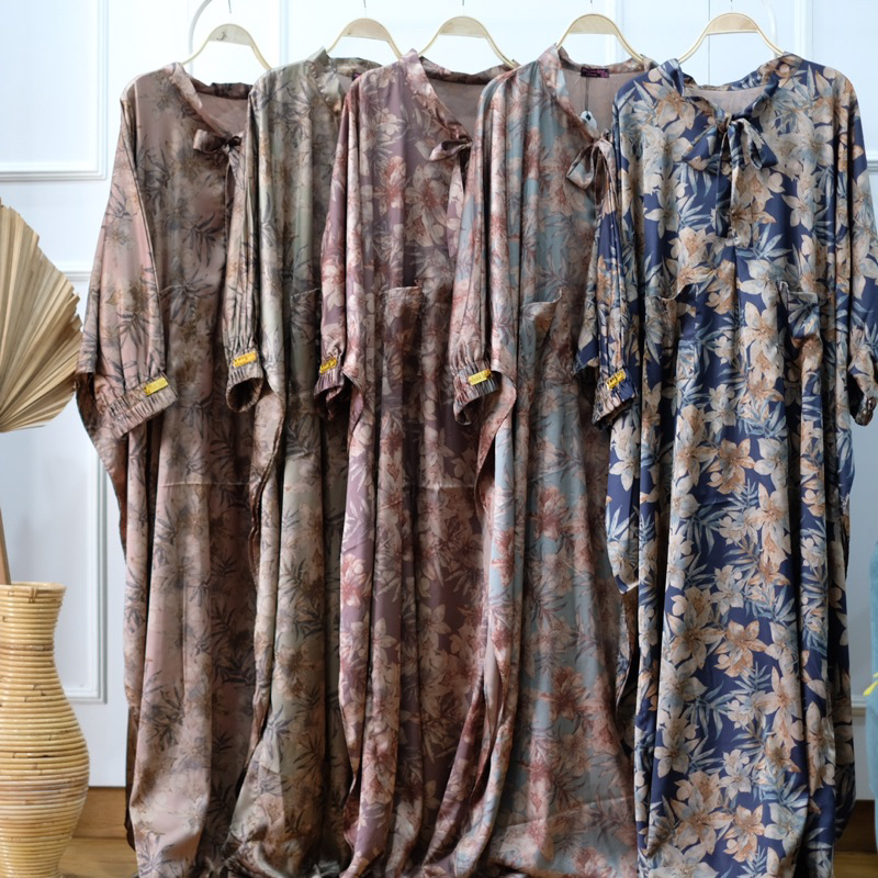 Kaftan kekinian dengan cutting pola kalong yang menggunakan bahan ARMANI SILK premium dijamin bahan mewah dan super adem dingin. dengan cutting yang menyesuaikan BB kecil atau besar tetap bagus di body ๐๐