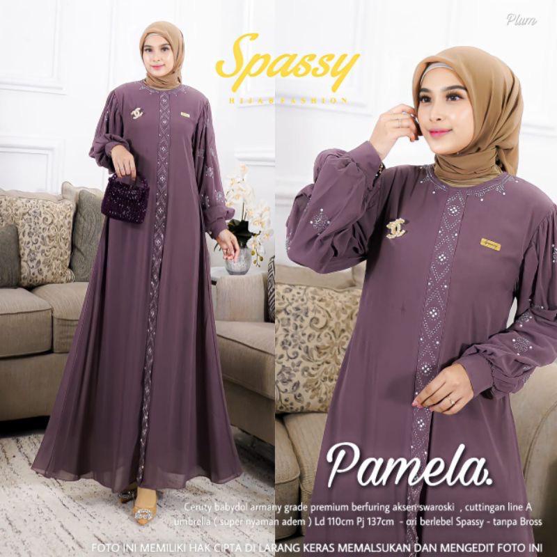 Detail Gamis Kekinian 2023 Pamela Dress Ceruty Babydoll Full Furing Aksen Swaroski Baju Kondangan Wanita Gamis Pesta Mewah Elegan
