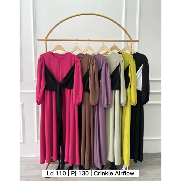 Deskripsi ✨Matt : Crinkle Airflow ✨L dada : 110 cm ✨P baju 130 cm ✨busui/sleting depan ✨Tali bagian dada bisa d ikat ke depan & Belakang ✨pergelangan tangan karet
