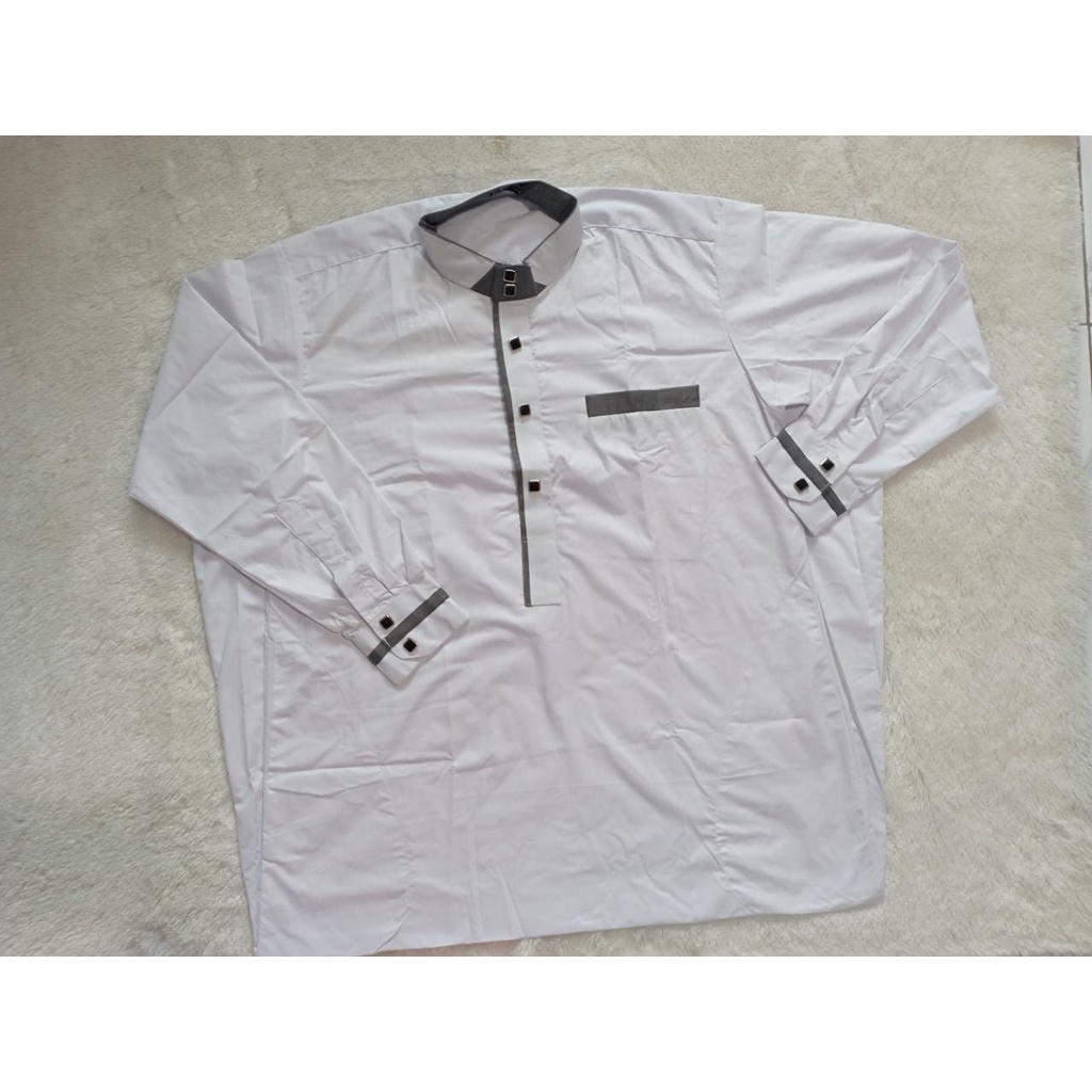  Bahan SUPER SPOON  SIZE S, M, L & XL  SIZE 13,14 &15  Bagian depan menggunakan kancing minset premium  Bagian kerah tegap  List abu terdapat pada kerah bagian dalam dan lengan bawah  List abu merupakan bahan embos print  Bagian kiri atas terdapat saku yang di tambahkan pin hitam yang elegant  Bagian kiri dan kanan samping juga terdapat saku  Bahan sangat lembut, halus dan nyaman digunakan untuk persiapan ibadah atau menyambut hari idulfitri  Kualitas butik harga merakyat
