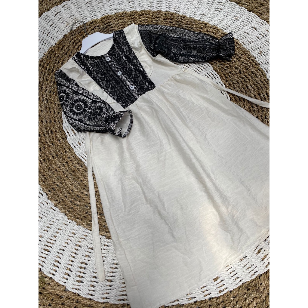 Detail Gamis Couple Ibu dan Anak Malika usia 1-10 tahun bahan Pololinen mix Brukat Malika