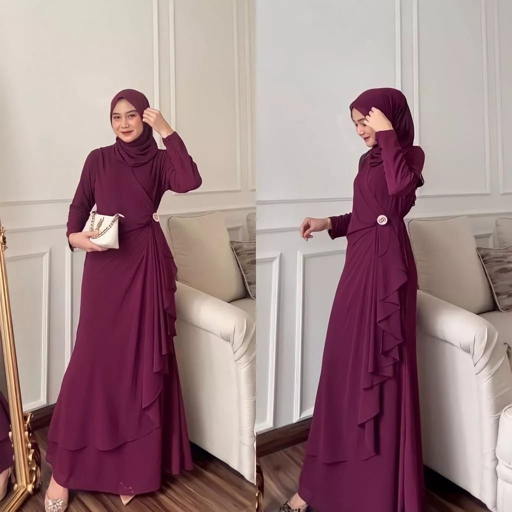 Detail Gamis maria maxy dress bahan ceruty baby doll premium full furing / busui / resleting depan original