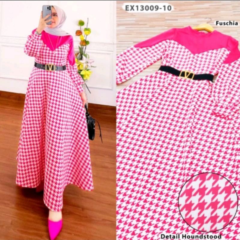 Detail Gamis Midi Extu original warna pink fushia scuba tanpa belt