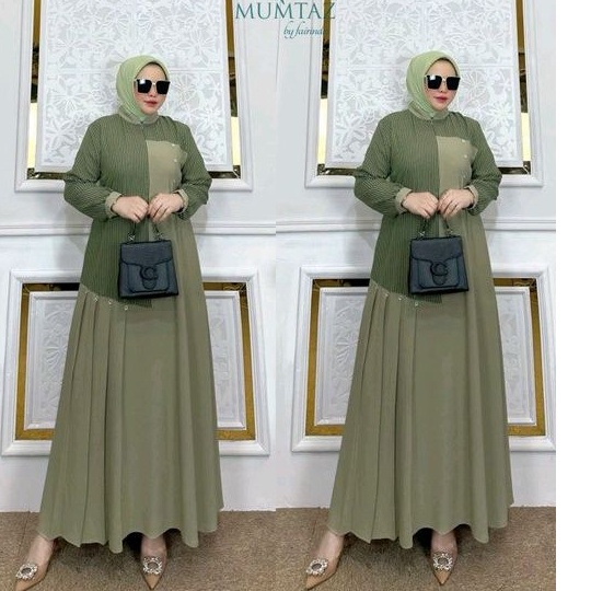 New arrival Mooza Dress Mumtaz Spesifikasi ✨ Gamis mewah dg variasi kancing & rempel ✨ Kancing gold di lengan baju ✨ Motif salur (Matt Syakilla Import) ✨ Polos Itycrepe Premium ✨ Ld 108 Pb 138 ✨ Terdapat Tali Belakang ✨ Resleting Depan