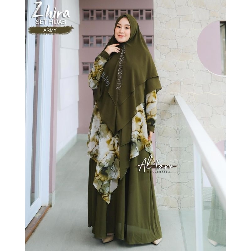 Fashion Muslim > Dress Muslim > Set Baju Muslim > GAMIS NARA ZHIRA ALFARO CERUTY BABYDOLL SET KHIMAR baju muslim modis modern khimar antem motif printing abstrak