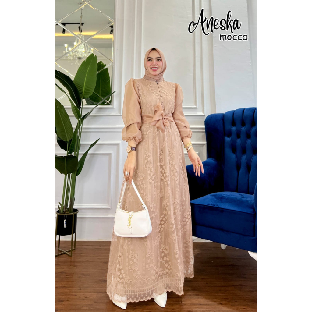 Video perkenalan produk GAMIS PESTA KONDANGAN LENGAN ORGANZA ANESKA. Sumber: Shopee.