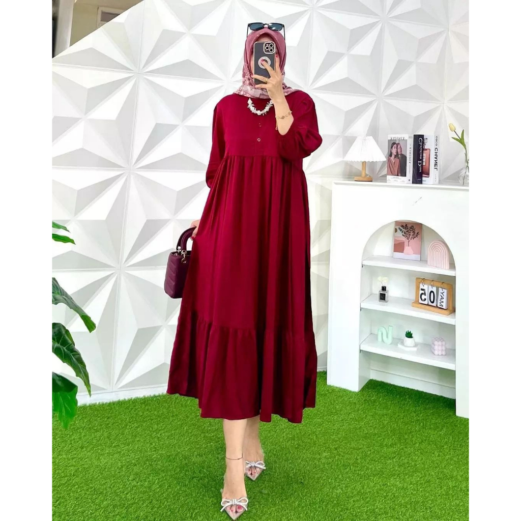 Detail Gamis Polo Linen Naya Midi Adem Jumbo Kekinian Viral Gamis Kondangan Dress Wanita MuslimahModern Premium Terbaru
