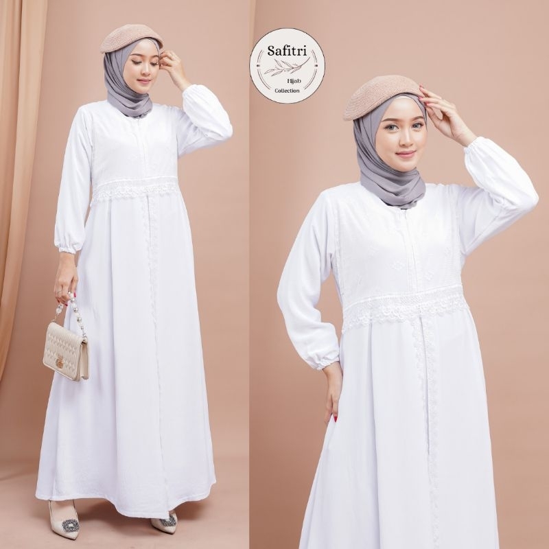 Detail AISYA DRESS Gamis putih bersih hitam Thawaf Umroh Manasik Haji by Safitri Fashion
