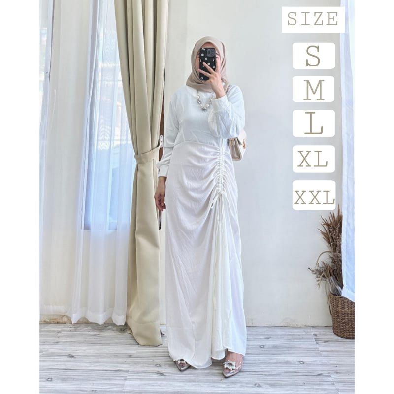 Detail GAMIS PUTIH TERBARU CRINCLE AIRFLOW DRESS PUTIH BROKRN WHITE