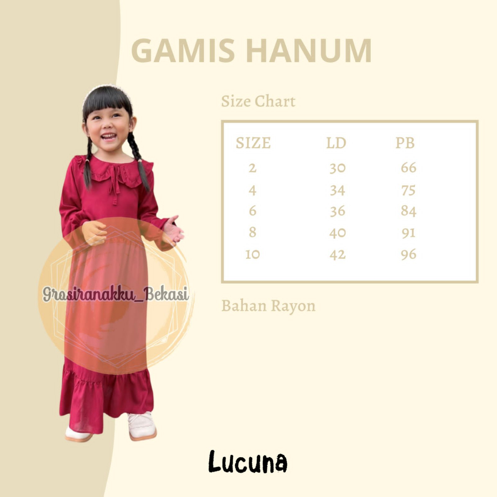 Fashion Muslim > Pakaian Muslim Anak > Pakaian Muslim Anak Perempuan > Gamis Rayon Anak Hanum Lucuna Warna Navy Size 2-10 Thn