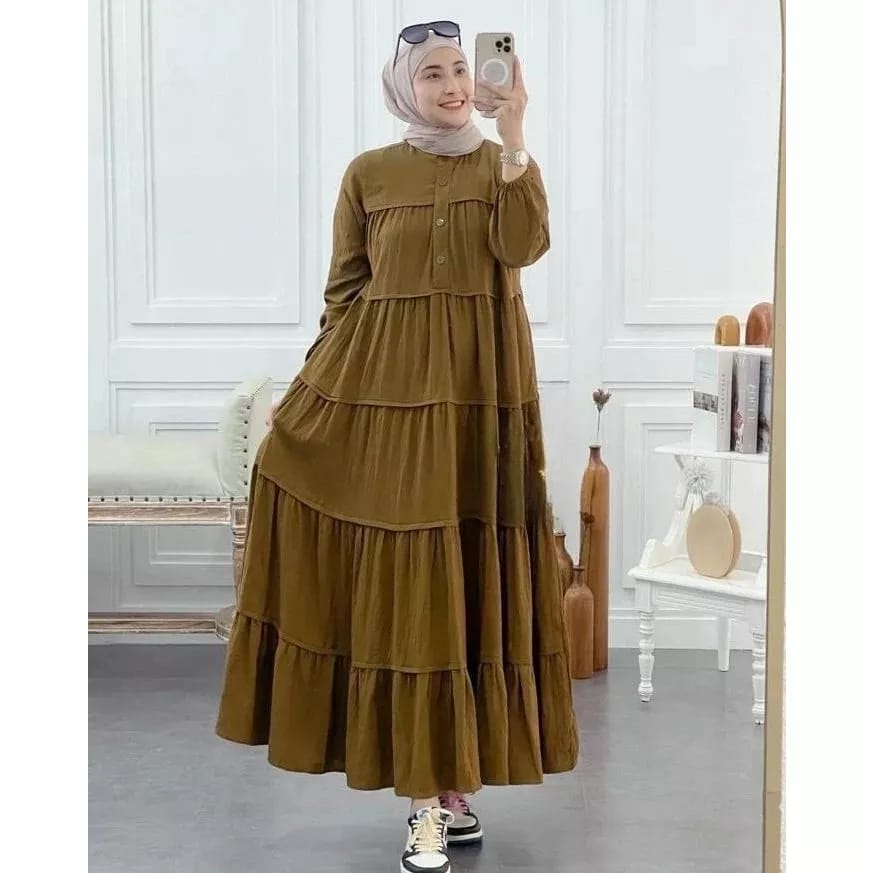 Detail Gamis Remaja Kekinian Inara Dress Polos Gamis Crinkle Premium Baju Wanita Jumbo