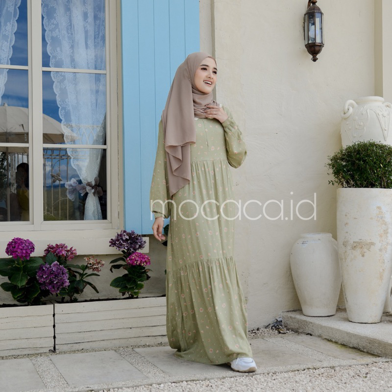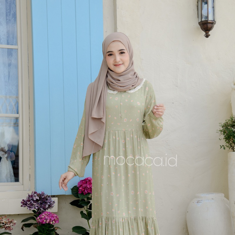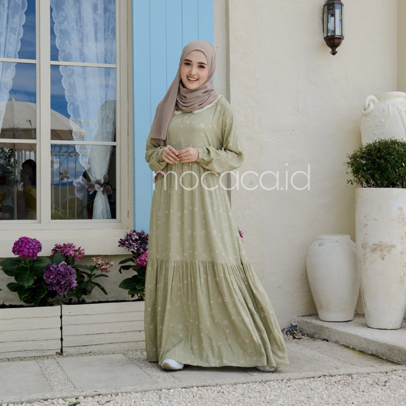 Detail Gamis rumahan renda depan busui rayon premium - motif greentea dandeloin
