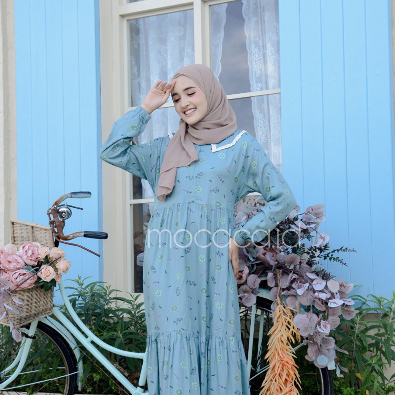 Detail Gamis rumahan renda depan busui rayon premium - motif dust blue clove
