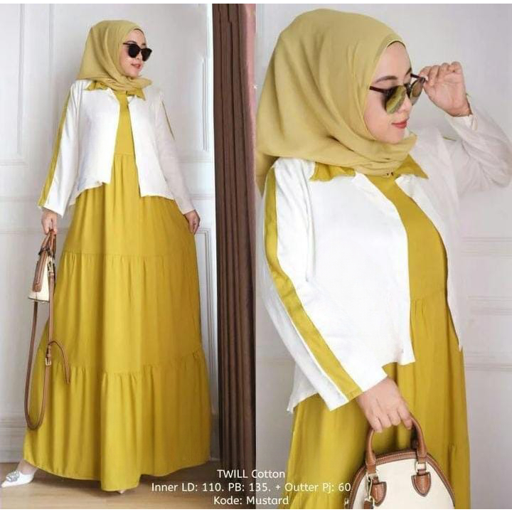Fashion Muslim > Dress Muslim > Set Baju Muslim > GAMIS SET OUTHER SUASTY SET BAHAN KATUN RAYON APLIKASI SABLON DAPAT INNER DAN OUTER LD 110 CM PANJANG INNER 135 CM PANJANG OUTER 60 CM PANJANG TANGAN 55 CM SETELAN WANITA TERBARU / FASHION MUSLIM WANITA / ONE SET JUMBO / DRESS RAYON KOREAN STYLE