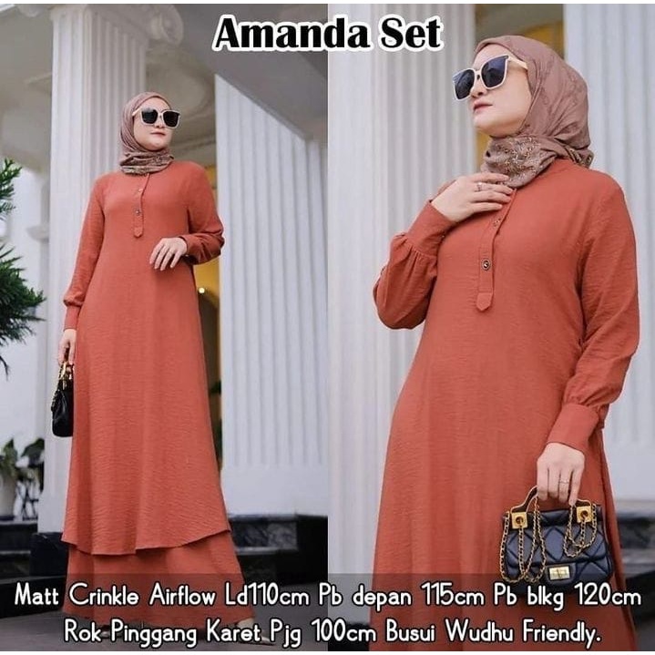 Detail GAMIS STORE - Amanda One Set Matt Cringkle Airflow Polos Basic Fit To XL Besar OOTD Setelan Wanita Muslim Premium
