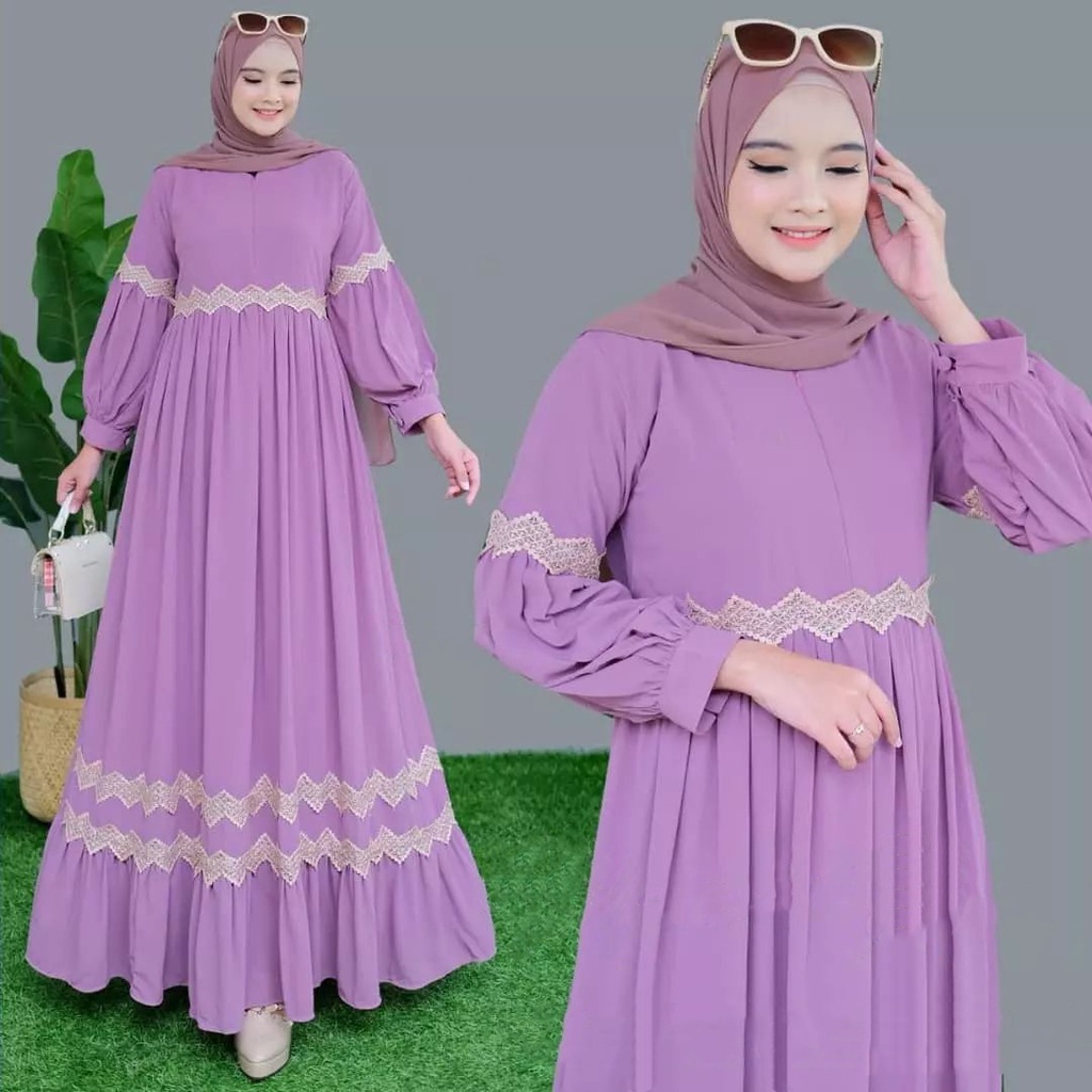 GAMIS STORE - Maudi Maxy Lace Dress Gamis Ceruty Babydoll Premium Lapis Puring Fashion Gaun Wanita Kondangan Terbaru