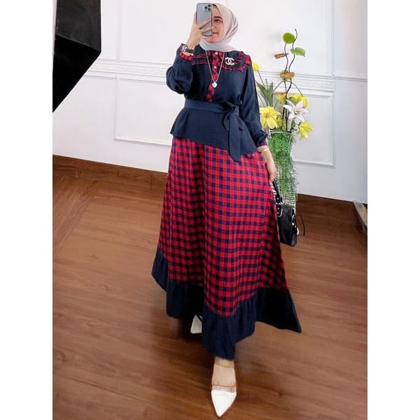 Fashion Muslim > Dress Muslim > Gamis > GAMIS STORE - Nila Set 2in1 l Setelan Shakila Polos Mix Katun Kotak Import Fit S-XL | Baju One Set Atasan + Rok Remaja Wanita Muslim Kekinian