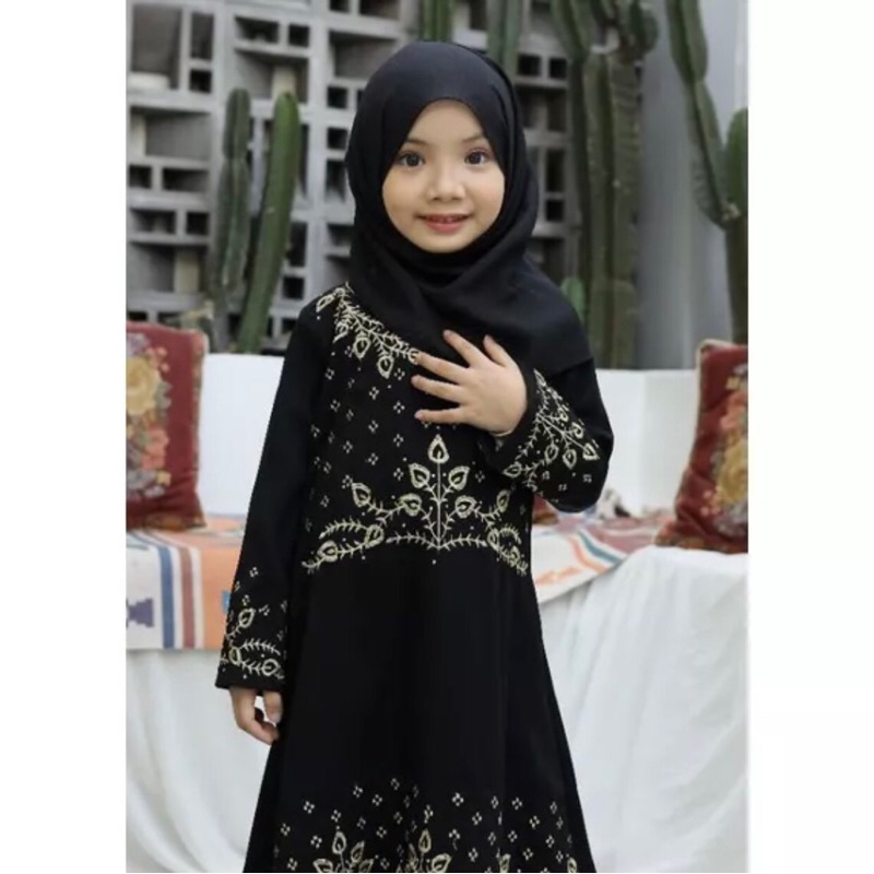 *Abaya Anak Bordir Hawa 155 + pasmina 1 stel* Bahan Jetblack Saudi Kombinasi Bordir elegan cantik bertabur mata2 Ready size s m l xl S umur 4 5 M umur 6 7 L umur 8 9 XL umur 10 11 12