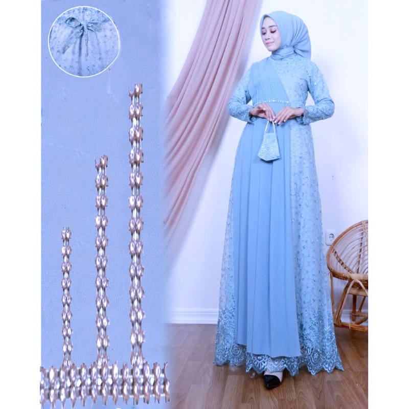 Detail Gamis Syari Muslim CaniLLa Gamis/Dress Brukat Full Terbaru Baju Wanita Jumbo Abaya Syari Remaja Kekinian Kondangan Pesta Terbaru Bunga Cokelat Navy Putih