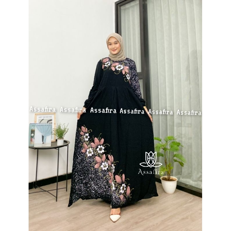 Detail Gamis twill lukis ori terbaru dan terlaris bahan adem dan teb