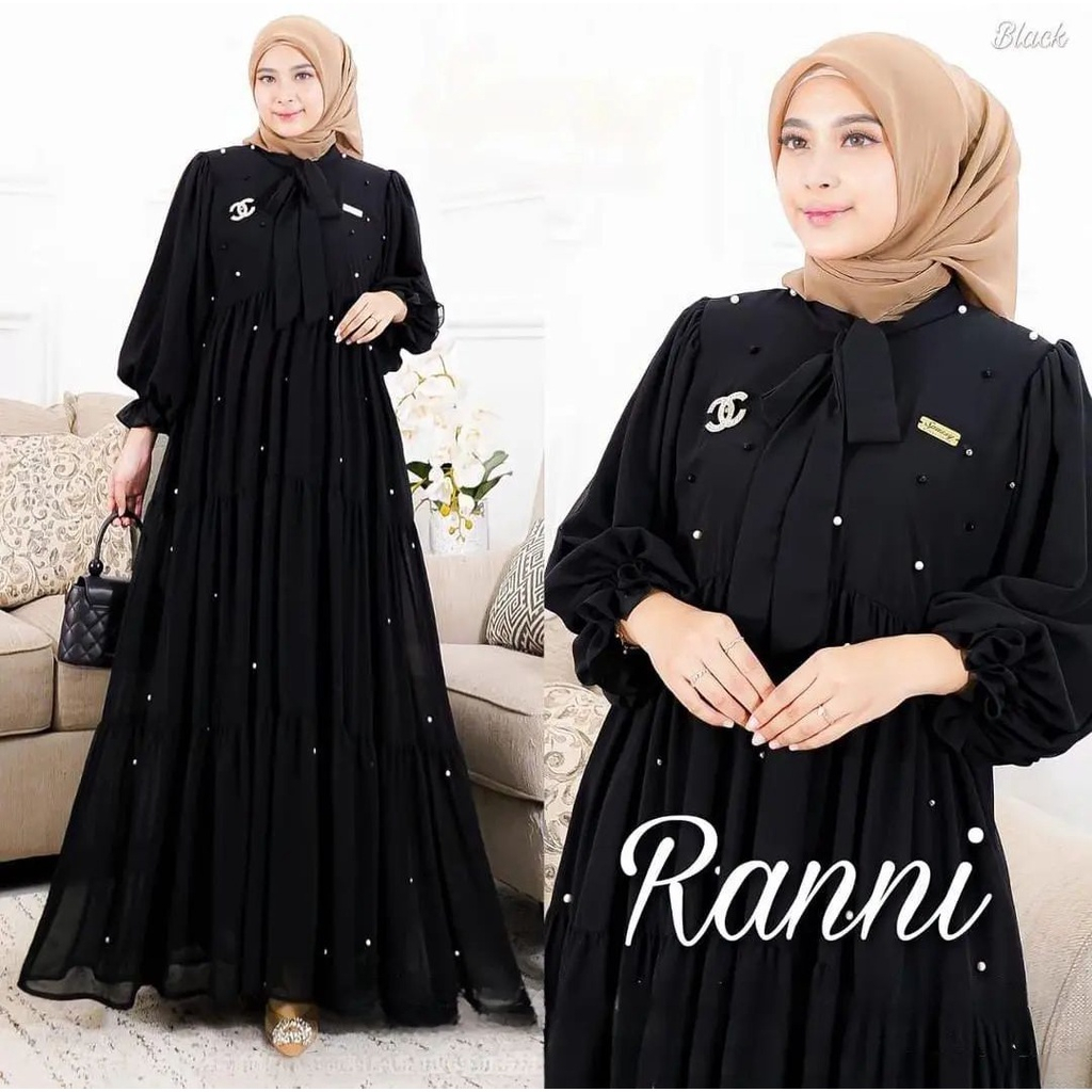 Fashion Muslim > Dress Muslim > Gamis > Gamis Wanita Dewasa Busui Ranni Dress Aplikasi Mutiara Bahan Ceruty Babydoll Full Puring Premium LD 110Cm Fit To XL Jumbo / Fashion Muslim Wanita Tali Pita Kekinian