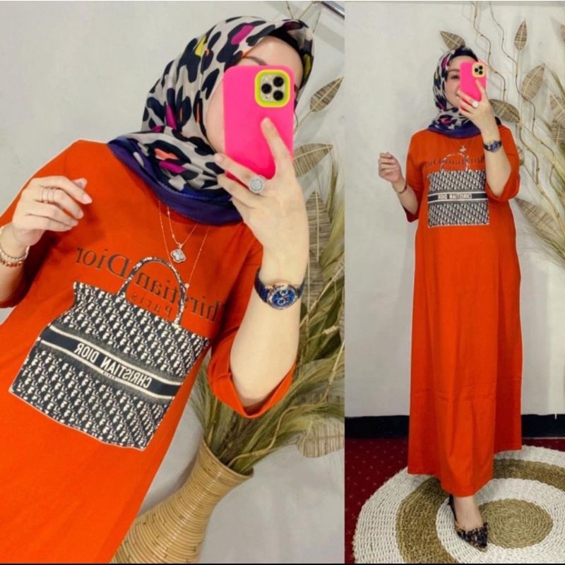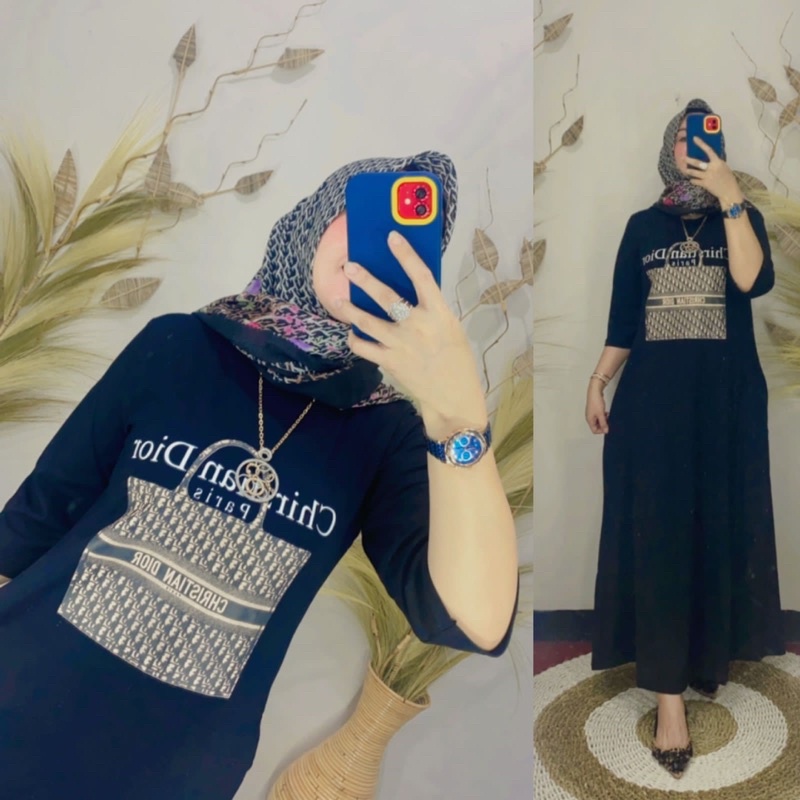 Ready stok gamis jumbo dior 👉bahan combad 20s 👉ld 120 PB 138 👉sablon plastisol 👉ada saku disamping kanan bisa max bb 95kg