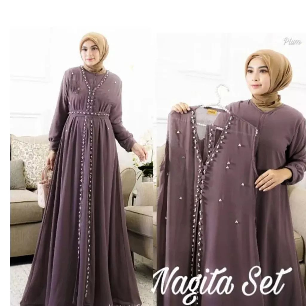 Fashion Muslim > Dress Muslim > Gamis > GAMIS WANITA SET NAGITA DRESS BAHAN CERUTY APLIKASI MUTIARA LD 100 - 120 CM PB 140 CM GAMIS WANITA TERBARU 2023 / DRESS CERUTY BABYDOLL PREMIUM / MAXY DRESS WANITA JUMBO / PAKAIAN MUSLIM WANITA