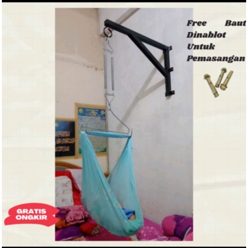besi gantungan samsak/ gantungan ayunan bayi spesifikasi produk * terbuat dari besi hollow 4×4 cm tebal 1,2 mm * tinggi plat yg nempel ketembok 33cm-35 cm tebal 4 mm * panjang bentangan ke depan -+ 70 cm * mampu menahan beban sampai 80 kg * terdapat 3 titik lubang untuk dinabolt * bonus 3 pcs baut dinabolt untuk pemasangan ke dinding * warna yg tersedia warna hitam * packing menggunakan kardus. aman saat pengiriman